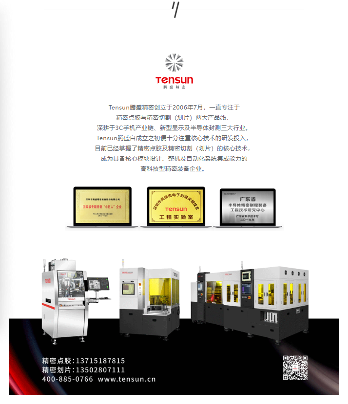 基于近年來中國先進封裝產業的崛起與發展,Tensun騰盛精密周云總監從客戶實踐角度出發,重點分享了騰盛十六年來在精密點膠與精密切割工藝上的沉淀與突破。周云總監表示,在精密點膠應用上,騰盛以媲美國際品牌的品質獲得眾多頭部企業的信賴,騰盛精密的點膠設備以絕對市場占有率,獲得國家級專精特新“小巨人”稱號;而在精密切割應用上,騰盛精密始終保持著12寸國產劃片設備出貨第一的紀錄,同時騰盛精密也是中國第一家研制12寸劃片設備的企業。