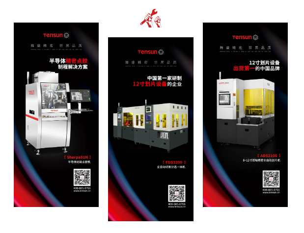 迄今為止,Tensun騰盛專注于精密點膠與精密切割(劃片)兩大產品線,抓住最新技術發展趨勢,掌握了多軸聯動運動控制算法與應用技術、機器視覺算法與應用技術、精密微量點膠控制技術、精密平臺的設計與制造技術、高精度劃片切割的工藝應用等核心的技術。Tensun騰盛產品的核心軟件算法、視覺算法和核心的部品/部件,都是自主研發和生產的。在點膠領域,Tensun騰盛已成為國內最具實力的自動點膠領導品牌,可以為客戶提供從自動上料、精密點膠、檢測、組裝、固化、自動下料等一系列的自動化一體式解決方案。在半導體劃片領域,Tensun騰盛是中國第一家研制12寸劃片設備的企業,也是國內12寸劃片設備出貨第一的中國品牌。